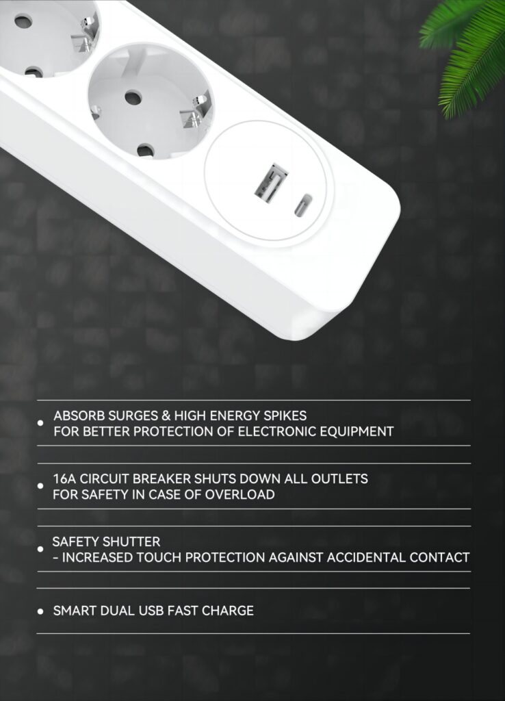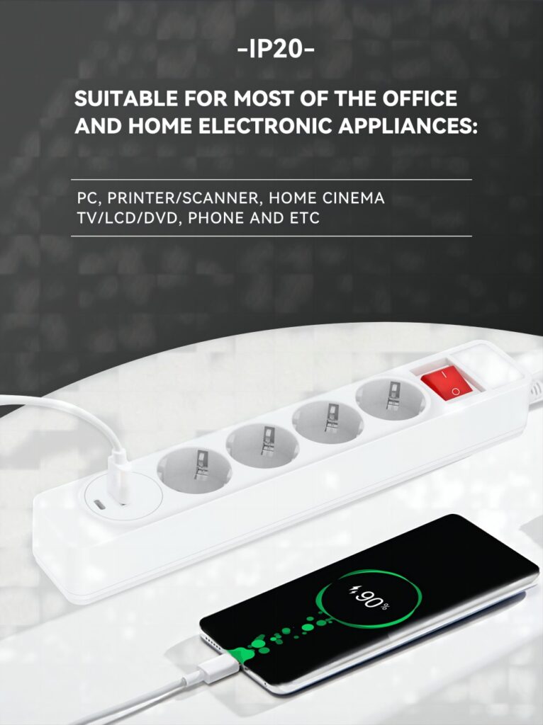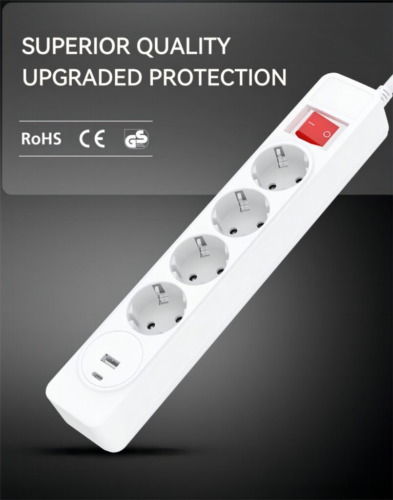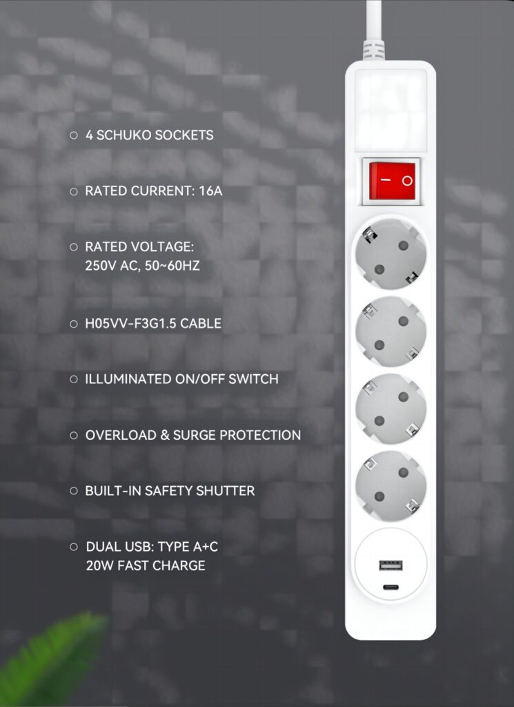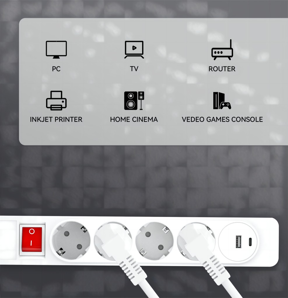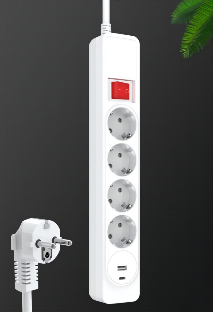 4 way power strip EU SCHUKO type with Master switch